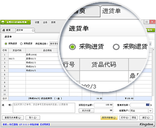 采購進貨、退貨,分倉管理,向雙重身份客戶的購進,現(xiàn)付、賒賬、整單抹零折扣均可處理,滿足日常采購業(yè)務需求;提供進貨單查詢、進貨統(tǒng)計報告,全面的采購數(shù)據(jù)分析。