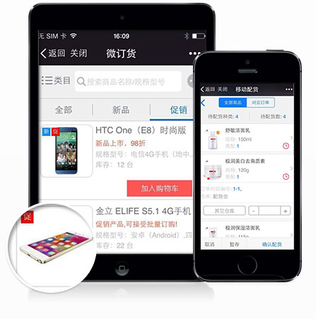 • 經(jīng)銷商門戶—微信分銷訂貨平臺,企業(yè)經(jīng)銷商通過關(guān)注企業(yè)微信服務(wù)號,可在微信中下達ERP系統(tǒng)銷售訂單
