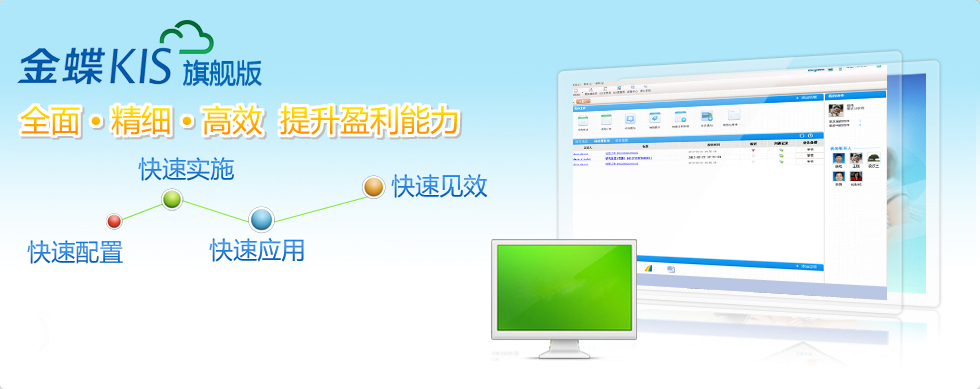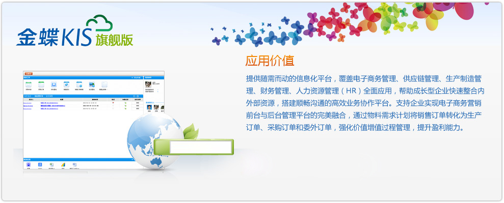 金蝶KIS旗艦版,覆蓋電子商務(wù)、供應(yīng)鏈、生產(chǎn)制造、財務(wù)、人力資源管理全面應(yīng)用,幫助企業(yè)高效整合內(nèi)外部資源。